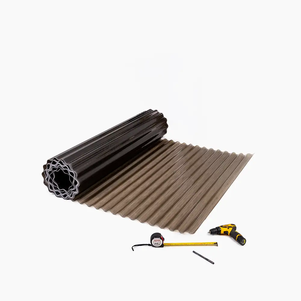 Гофрований шифер ELYPLAST із прозорого пластику у бронзовому кольорі — це сучасний матеріал преміум-класу для покрівлі, створений за технологією ламінування поліефірних смол з мінімальним вмістом стиролу. Його конструкція підсилена скловолокном, рівномірно розподіленим по всій площині. Завдяки інноваційній технології виробництва шифер відрізняється однорідною текстурою, підвищеною гнучкістю та довговічністю.